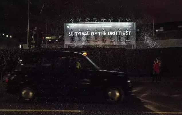 微软为了宣传Xbox的游戏古墓丽影,在伦敦市中心的广告上上演真人版24小时极限生存比赛。8个自告奋勇的参赛者身着统一的黑色连体衣和头盔被绑在之上,承受着各种恶劣环境的考验,挑战过程还同时在twitter上面全程直播,不得不说,这才是为真实的极限挑战!其中一站到底的终玩家将赢得古墓丽影提供的旅游大奖。