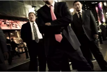 ▲图比利时摄影师拍到的日本黑帮丨粉色领带,他们很重视自己的形象